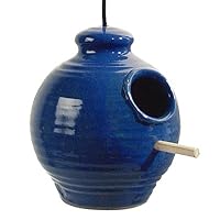 (More customer reviews)This is a beautifully crafted feeder. I purchased the blue one to match the bird bath in my yard. Unfortunately, it is not squirrel proof. A squirrel knocked it down the very first day, and he either chewed the string or just broke it with his weight. The yellow finches have taken to it, but I found the perching stick on the ground (pesky squirrel again?!) Also, I was disappointed in the hanging apparatus-- one string that you have to figure out how to knot, loop and hang. Again, this is a beautifully crafted feeder, but seems more decorative than functional. For this reason, I regret the $24.99 I spent, since I'm more interested in functional bird feeders.